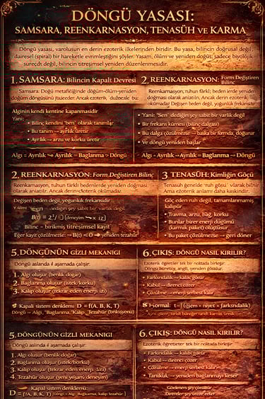 Ezoterik açıdan bakıldığında bu döngü aslında bir ceza sistemi değil, bir denge mekanizmasıdır. Bilinç, eksik kalan parçalarını tamamlamak için kendi üzerine kapanır ve kendini tekrar tekrar üretir.