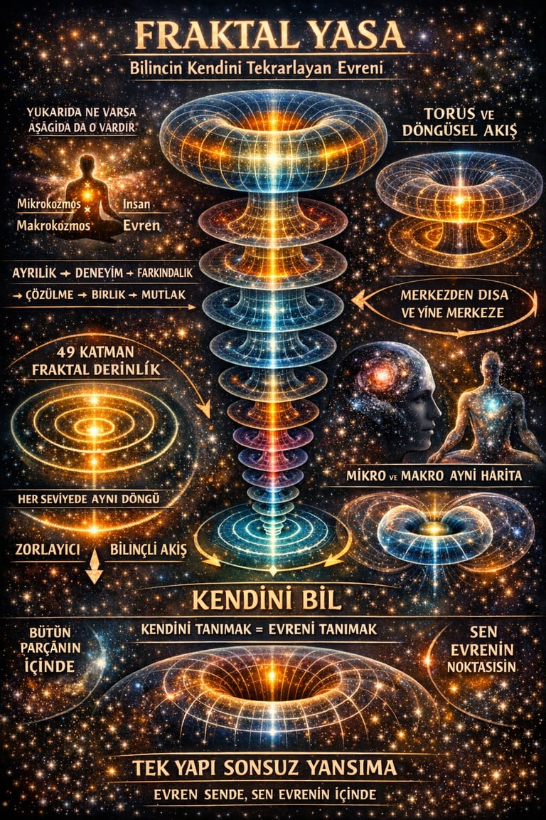 Bu ifade, fraktal yasayı doğrudan anlatır. İnsan sadece evrende yaşayan bir varlık değil; evrenin kendini deneyimlediği bir merkezdir.
