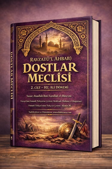 DOSTLAR MECLİSİ - (RAVZATÜ’L AHBAB) 2.CİLT-HZ. ALİ DÖNEMİ TERCÜMESİ-BÖLÜM-5. Ravzatü’l Ahbab (Dostlar Meclisi), Ataullah İbni Fazullah el-Hüseyni tarafından 1268 yılında Farsça kaleme alınmış olup, Benlizade Mahmut el-Mağnisavi tarafından Osmanlı Türkçesi’ne çevrilmiştir.