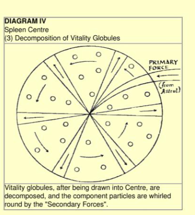 Öncelikle, Yaşam Kürecikleri Dalak Çakrasına çekilir; daha sonra her biri yedi çeşit Prana'dan biriyle yüklü olan yedi bileşen atomuna ayrılırlar.