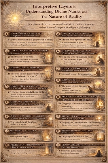 “The universe is Ghayb! For reflections have covered it!” reads the world not as pure disclosure but as veil. Multiplicity both reveals and conceals its source. The cosmos becomes simultaneously sign and curtain.