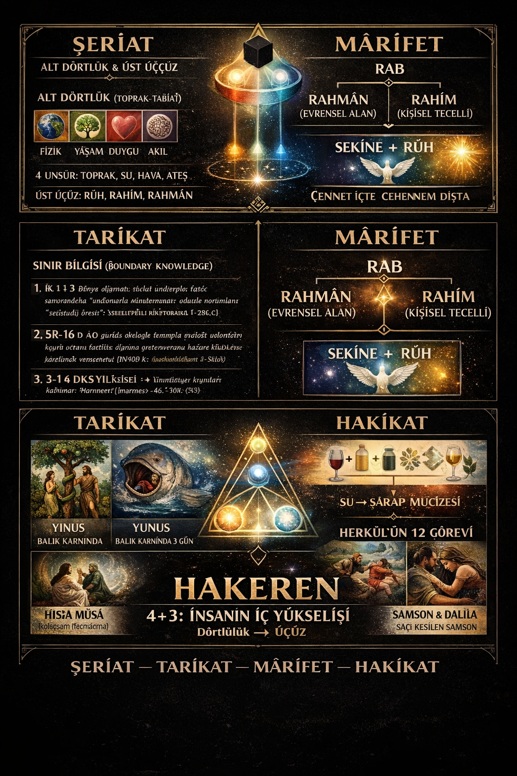 HAKEREN (Lord's Saint). “Hızır sağlam sandalı kurtardı, delmek ile!” “İyisi için kesti kötü çocuğu bile!” “Başı kesilen çocuk” ve “delinen o sandal”; Arıtılan dört katman, şeffaf beden! İbret al! “Kafası kesilince dirilen dört kuş budur!” Evcilleştir! Islık çal! Gelmez ise uzak dur!