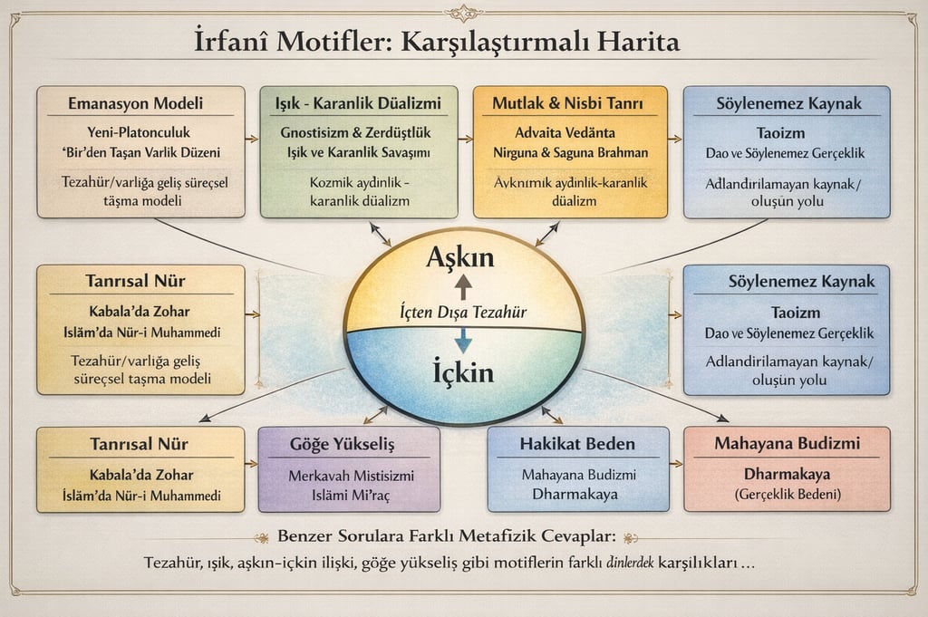 7) “Tüm dinlerle karşılaştırmalı” geniş çerçeve: Benzer motifler, farklı ontolojiler