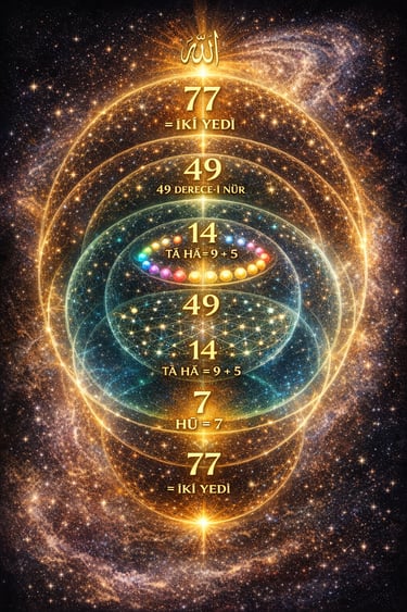 14. (77’nin “aynalı/tekrarlı” sembol değeri) 77, yedinin tekrarı olarak (7↔77) şiirde “ayna/yansıma” metaforuyla okunur. Bu tür tekrar sayıları, dinsel-mistik geleneklerde “gösterge yoğunlaştırma” işlevi görebilir (teolojik hüküm değil; simgesel dil tekniği).