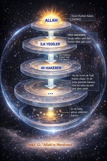 2. Yedi katmanlı kozmoloji tasviri, çeşitli dinî ve felsefî sistemlerde görülen dereceli evren anlayışıyla paralellik gösterir. Bununla birlikte bazı geleneklerde bu katmanlar ruhun fiilî dolaşım alanları olarak ele alınırken, bazı sistemlerde yalnızca sembolik düzeni anlatan metafizik mertebeler olarak yorumlanır.
