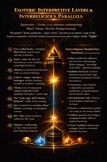 Many of the poem’s equivalences (biology ↔ revelation; prophets ↔ stations; jinn ↔ psychology) work as symbolic mapping, not doctrinal propositions. A responsible academic approach distinguishes: