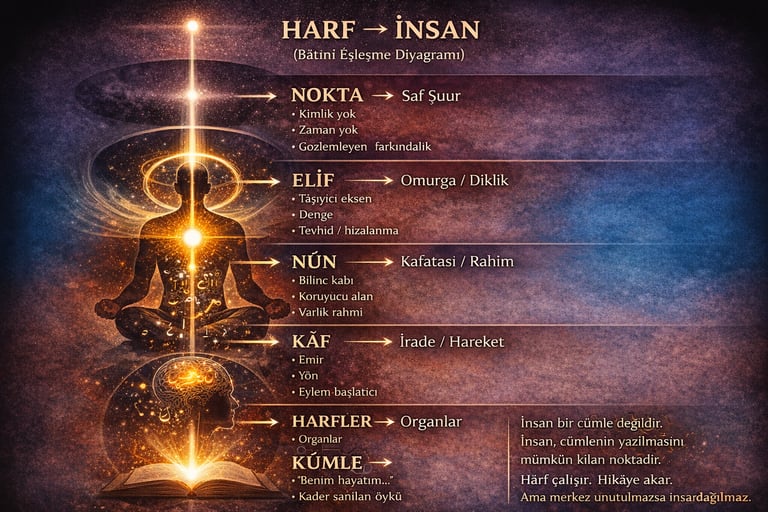 Bâtınî ilimde temel kaide şudur: “Bütün harfler noktadan doğar; nokta, görünmeden yazıyı kurar.”