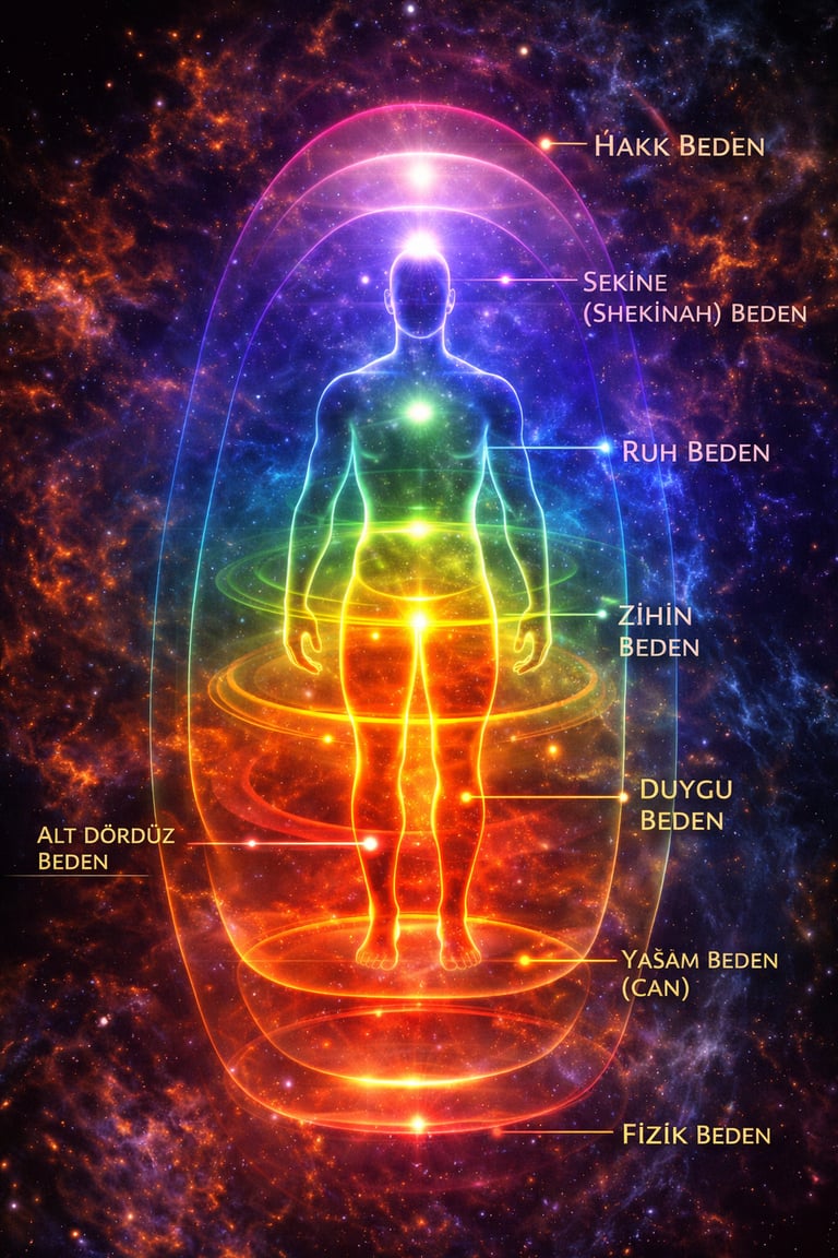Varlık tek bir düzlemde var olmaz; katmanlı bir bilinç yapısı içerisinde işler. İnsan, ne yalnızca fiziksel bir beden ne de yalnızca ruhsal bir varlıktır. O, ilahi çekirdekle nefsânî araçların birleştiği çok katmanlı bir sistemdir.