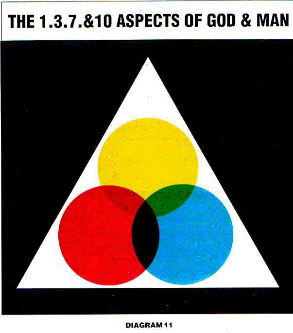 Diagram 6 and diagram 11 will perhaps make the subject clear. It must be kept in mind that the Worlds and Cosmic Planes are not one above another in space, but that the seven Cosmic Planes inter-penetrate each other and all the seven Worlds. They are states of spirit-matter, permeating one another, so that God and the other great Beings who are mentioned are not far away in space. They pervade every part of their own realms and realms of greater density than their own. They are all present in our world and are actually and de facto "nearer than hands and feet." It is a literal truth when we say " in Him we live and move and have our being." For none of us could exist outside these great Intelligences Who pervade and sustain our world with Their Life. It has been shown that the Etheric Region extends beyond the atmosphere of our dense Earth; that the Desire World extends out into space further than the Etheric Region; also that the World of Thought extends further into inter-planetary Space than either of the others. Of course, the Worlds of rarer substance occupy a larger space than the denser World, which has crystallized and condensed, thus occupying less space.