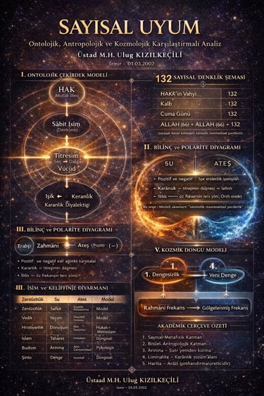 SAYISAL UYUM. Ya “göğüs açılarak” kalbe iner “Cebrâil”; Ya Mars’a çıkar “inen demir” ile “Azrâil”! “HAKK’ın vahyi” ile “kalb” eşittir onun için (132); “Cuma günü” de aynı… Artık sorma sen niçin? (132)