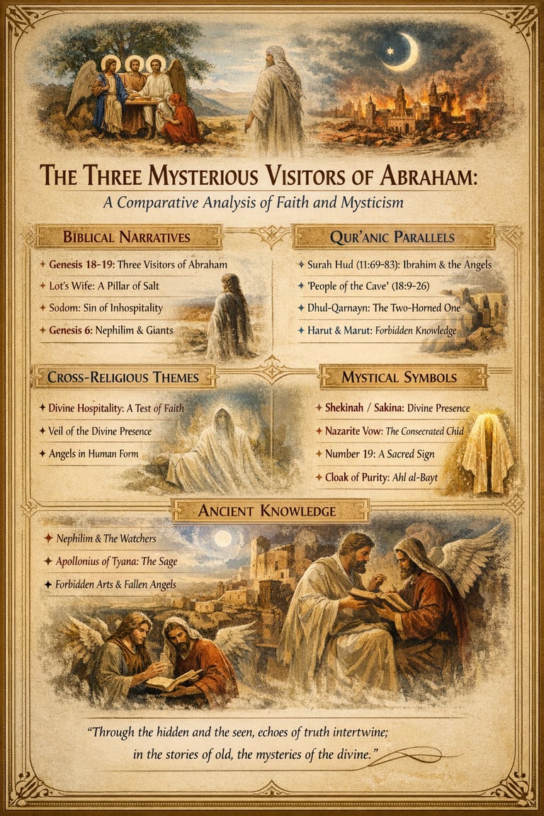 Cross-religious pattern: hospitality as a theophanic test: Comparative religion frequently reads “hosting strangers” as a moral-theophanic testing ground—Genesis 18 is the classic Western anchor; Qur’an 11 echoes it; other traditions (Greco-Roman and South Asian) also preserve “divine visitor in disguise” motifs. In your poem, this becomes a spiritual diagnostic.