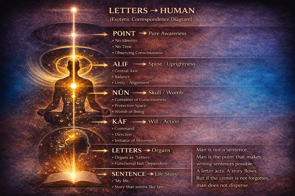 THE SECRET OF POINT.In esoteric (bâtınî) knowledge, the fundamental principle is this: “All letters are born from the point; the point constructs writing without being seen.” The Point: It is not a line It is not a shape It is not a letter Yet no letter can exist without it.