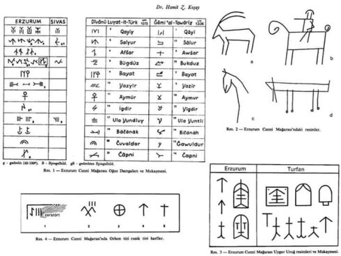 Bugün; Türkiye'de, Orta asya, Yenisey, Aral, Balkaş, Pamir, Kazakistan, Kırgızistan, Tamgalı Say, Talaş, Issıq Kölü, Başkurtistan v.s de mevcut onbinlerce pigtogram (mağara resmi), petroglif (yazı elemanlı kaya resmi-tamga) ve yüzlerce yazıtın aynısı ya da yakın benzeri geniş bir coğrafyaya dağılmış olarak Anadolu'da da mevcuttur. Bunlar, Türklerin Anadolu'da -17.000 öncesine varan varlığının kanıtlarıdır.